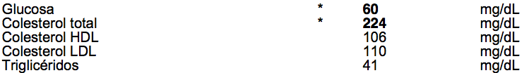 Here are the results of the blood tests from December 16 and 22, 2011, both taken in the late afternoon after nearly 24 hours of fasting (I do this every week, so it was nothing unusual). And please don’t worry about the boldface: it appears automatically if the numbers are not in the “recommended” range, which for cholesterol is below 200 and for glucose 65-110 mg/dL. And don’t worry about the spelling: it’s spanish because I live in Spain.